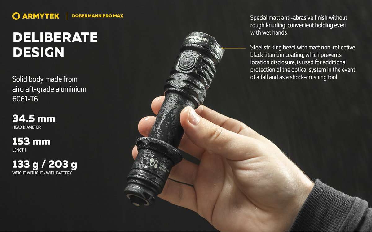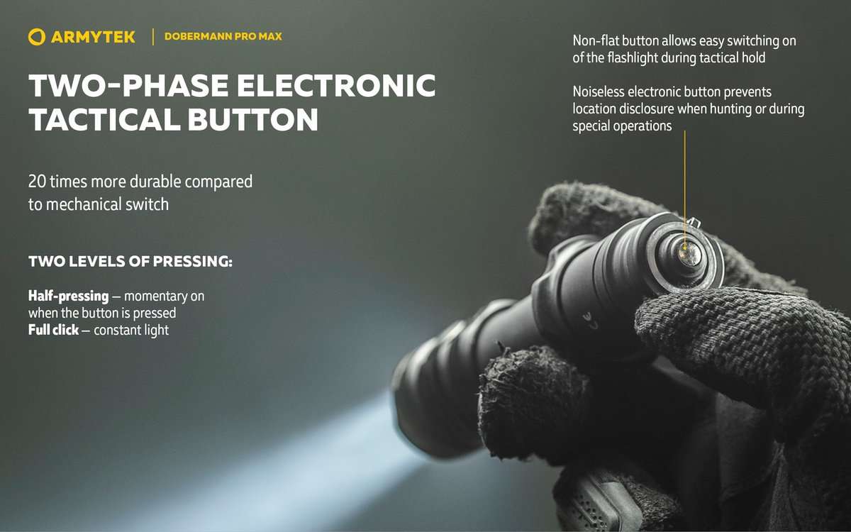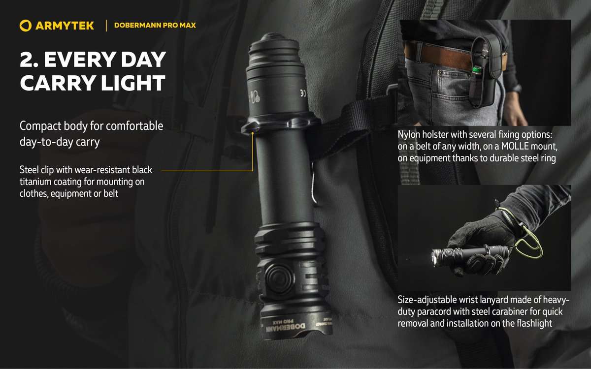 Whether you’re a professional in tactical fields or an avid hunter, the Armytek Doberman Pro Max combines brightness, durability, and flexibility to meet the demands of any mission.