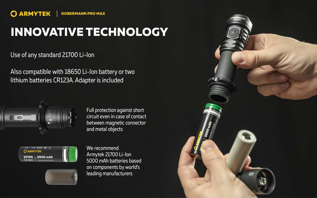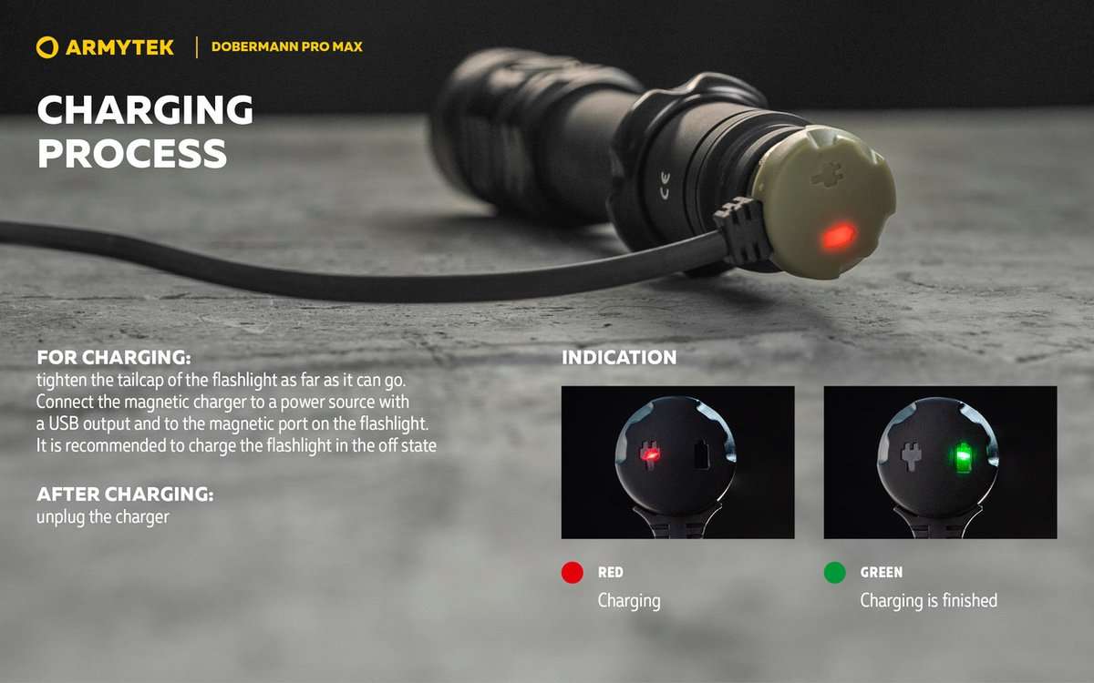 Versatile and adaptable, the Doberman Pro Max is compatible with Armytek’s magnetic remote switch and original weapon mounts, transforming it into a reliable mounted flashlight for tactical setups. Whether handheld or mounted, it delivers consistent, focused illumination exactly where you need it.
