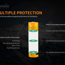 Fenix ARB-L21-5000 V2.0 is a high-capacity 21700 Li-ion rechargeable battery built for more power and longer runtimes. Additional features include a protection circuit in the anode to help prevent short circuits, over charge/discharge and over heating. Pressure relief vents which expel waste gas in the rare case of an internal short circuit preventing an explosion. Battery capacity up to 5000mAh. 500 charging cycles.