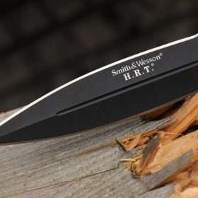 Smith and Wesson HRT 9 Double Edge Boot Knife comes with fixed 4-7/8″ black finish stainless double edge blade. and has 9-1/8″ overall lenght. The handle has textured rubber grip and a guard too. The breaker tip is useful in many situations and has the added utility of a lanyard hole. Black leather belt/boot clip sheath is included. The sheath has button closure and a strong steel clip for carry.