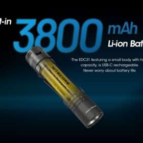 Constructed from high-quality aluminium alloy with a HA III military-grade hard-anodized finish, the EDC31 is built for durability. It’s IP68 rated, making it waterproof and submersible up to 2 meters, ready to withstand harsh environments and demanding situations. Whether for tactical defense, search operations, or emergency lighting, the EDC31 combines power, portability, and resilience in one compact package.
