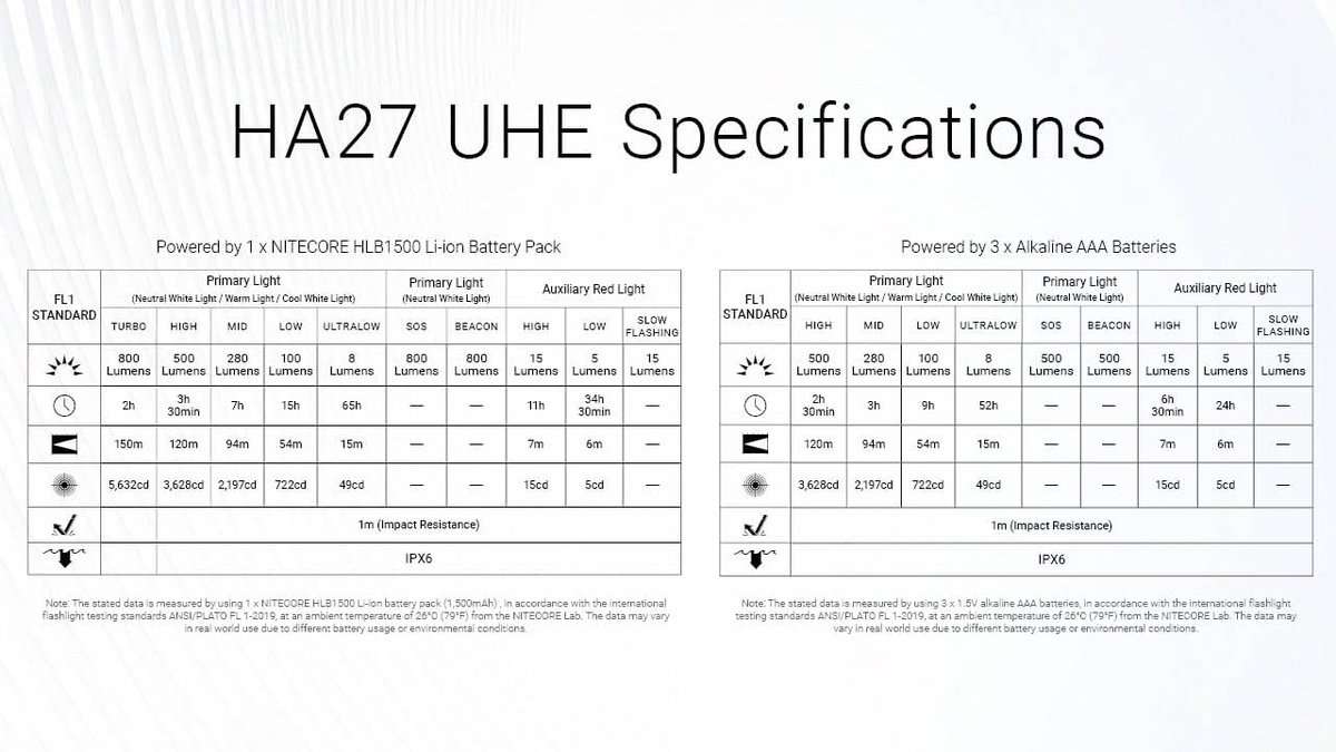 With multiple brightness levels, red light modes, and special functions like SOS, Beacon, and Warning Flash, the HA27 UHE adapts to a wide range of outdoor and emergency scenarios. Its rugged construction with IPX6 waterproof rating and 1-meter impact resistance ensures dependable performance in harsh weather conditions.