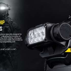 NVG Mountable Tactical Headlamp –Â The HC65M UHE can easily snap into a tactical or ballistics helmet with a NVG mounting bracket. Its wide angle beam with five brightness levels provides up close and middle range illumination. You can also swivel the headlamp up and down to easily adjust the beam direction. Its durable metal construction and an IPX8 waterproof rating ensure this headlamp can withstand indoor and outdoor elements and is ready for your next mission!