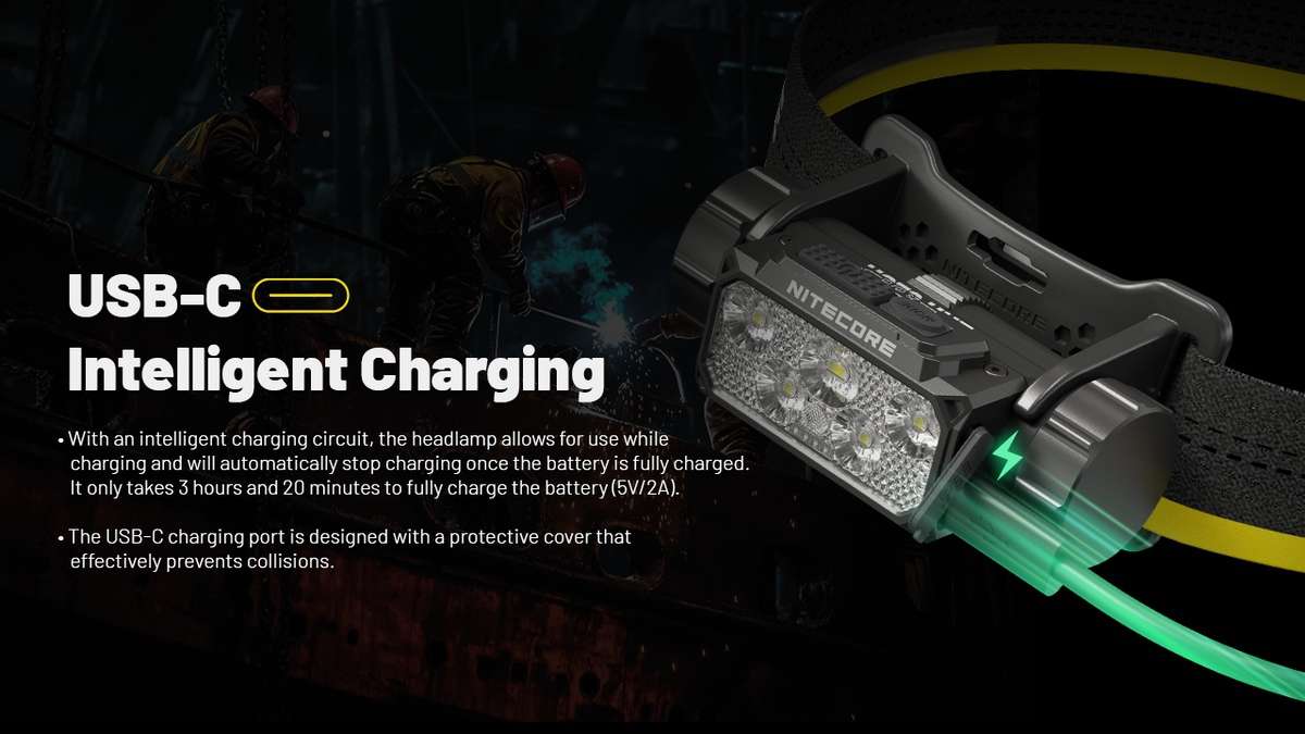 Adjustable tilt bracket (up to 180°), and a headband engineered for comfort, with near‑center gravity to reduce forehead pressure. (flashlight.nitecore.com)