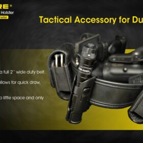 This Nitecore NTH10 lightweight slim profile hard case flashlight holster is a great accessory for duty carry of tactical flashlights. Designed specifically for the NEW P12, it can accept any flashlight with a one inch tube diameter. This slim, minimalist holster takes up very little space, allowing for freedom of movement without hindrance. The open top design allows for a quick draw of the flashlight. The sturdy clip is adjustable to secure onto belts from 1.5 to 2.25 inches wide and is molle compatible. Built from tough proprietary PE blend and with no moving parts, the NTH10 protects the crucial elements of your tactical flashlight with no extra weight or fluff.