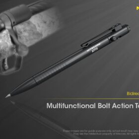 NITECORE Bolt Action Tactical Pen NTP31 is a uniquely designed aluminum alloy bolt action tactical pen. The three position bidirectional bolt action allows you to pop out the pen tip or windows breaker, or retract both for everyday carry. The NTP31 houses an easily replaceable Schneider gel ink refill for quick drying, waterproof, and fade resistant writing. On the other end of the NTP31 is a tapered tungsten steel point window breaker, whose hardness is only second to diamonds.