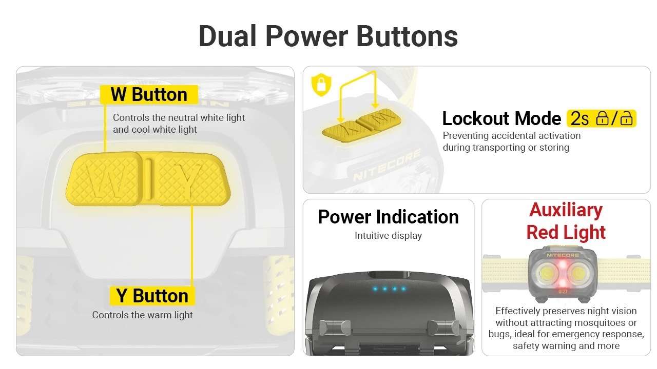 The NITECORE UT27 MCT Pro V2.0 (2025) is an ultra-lightweight headlamp designed for trail running and tested and proven in the field by trail running athletes. The UT27 features a bright 500 lumen spotlight warm LED that minimizes glare and a cool white 500 lumen wide angle flood to illuminate your entire field of vision. It is supplemented with a red light, perfect for camping, backpacking, stargazing and a flashing mode for emergencies and enhanced visibility. You can switch among these lights and adjust the brightness on the go with the easy to use dual switches.