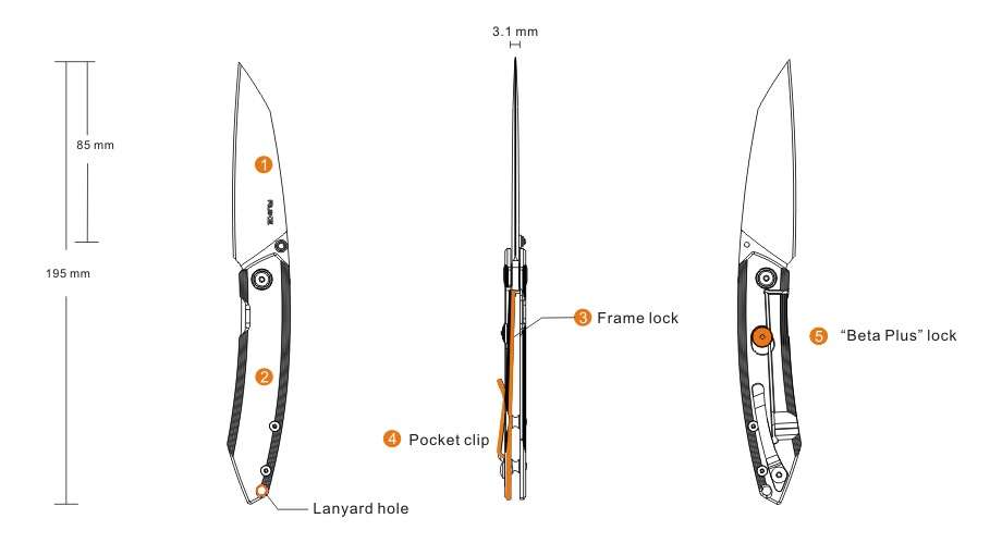 Blade Length: 85 mm / 3.35″