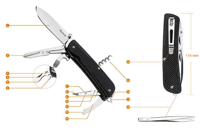 Ruike LD31-B Trekker knife is fitted with a pocket clip and a tungsten steel glass breaker making the knife ultra-portable and super practical for emergency situations. The one-handed operated 85mm blade, made of Sandvik 12C27 stainless steel can be opened quickly by the thumb stud, The LD series comes in various versatile tool combinations to best fit your requirements.