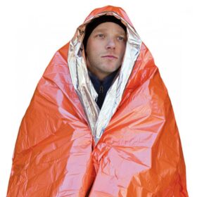 The emergency blanket opens easily and will not shred if nicked or punctured, rips and tears can be repaired. In addition, the blanket is quiet and won’t crinkle in high winds, and its high-visibility orange exterior makes it easy for rescuers to find you. Sized to fit one person.