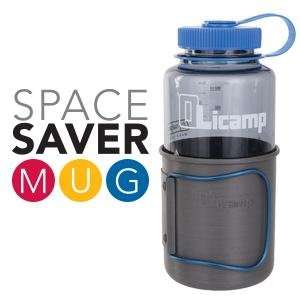 The Space Saver Mug fits snuggly over the bottom of a 32 oz Nalgene bottle and a 40 oz Klean Kanteen bottle, saving valuable space in your pack. The hard anodized surface is nearly scratch proof, easy to clean, and looks great too. The innovative handle design feels more like your favorite mug at home while still compactly folding down. The Space Saver Mug is large enough to boil water for freeze dried meals. This will be your go to pot for fast and light trips. Graduations are located on the side for measuring just the right amount of water. Holds 24 oz to the brim or 20 oz to the top graduation. Weight: 3.2 oz.