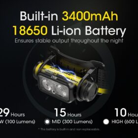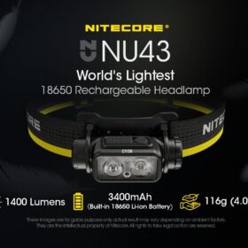 The Nitecore NU43 is equipped with a built-in 3400mAh high-efficiency battery for extended runtimes of up to 165 hours on ultralow, and over 10 hours on high. The best news is that it can fully charge in under 2 hours via its hidden USB-C port. The highly efficient current circuit provides up to a full year of standby power making it a great candidate for emergency kits.